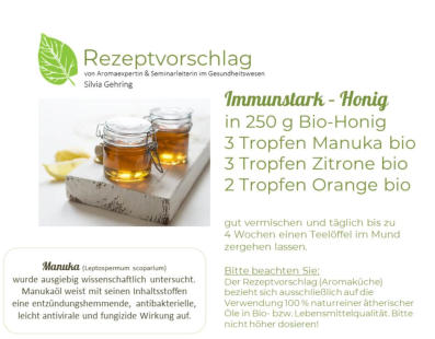 Die Anwendung ätherischer Öle liegt in Ihrem Verantwortungsbereich. Eine gute Zusammenarbeit durch Ihren Arzt/Heilpraktiker/in und
